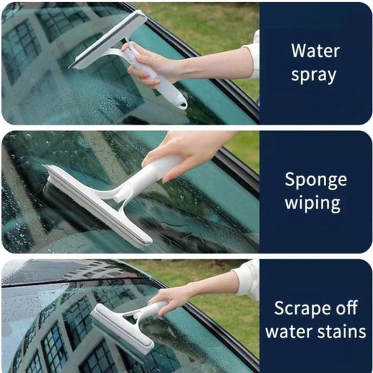3 in 1 Window Wiper with Spray Bottle Scraper Cleaning Brush, Car Home Window Cleaner Wiper