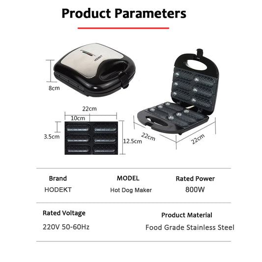 HODEKT Electric Hot Dog Maker Doughnut Sandwich Waffle Machine Breakfast Maker Double Sided Heating