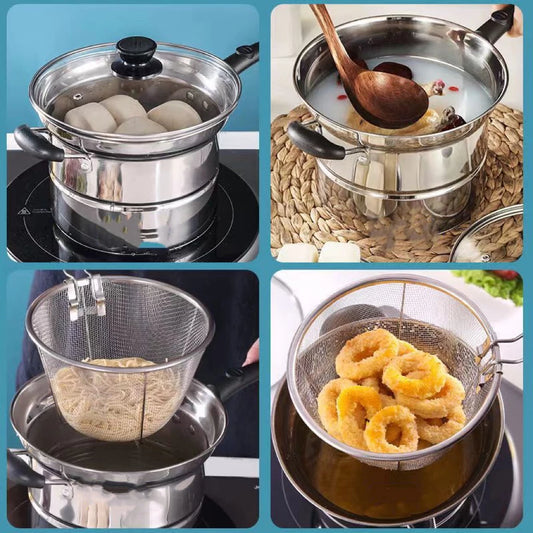 Multifunction Pot 3 in 1 Stainless Steam and Deep Frying Cooking Pot with Boil Basket