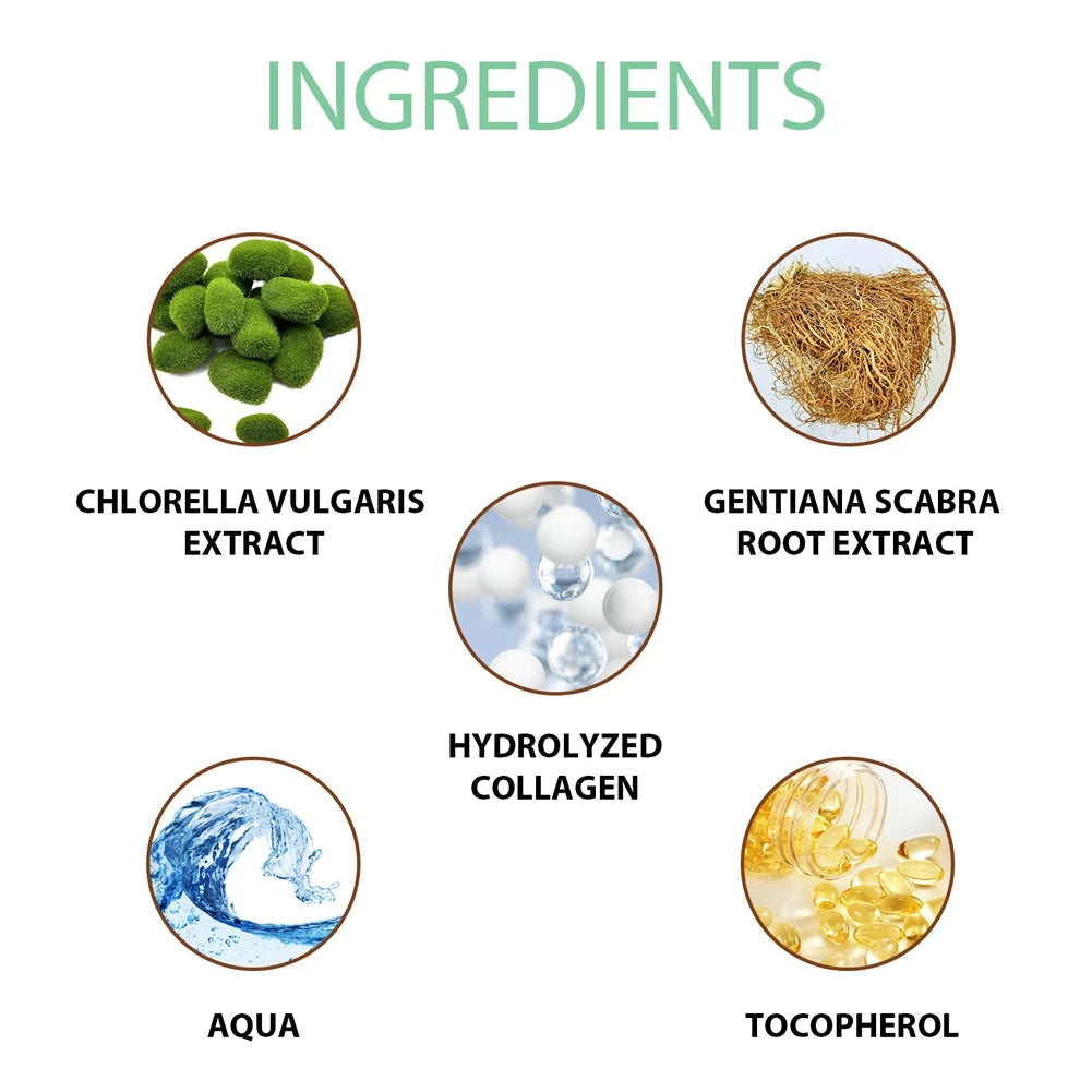 Key Ingredients——Chlorella Vulgaris Extract, Gentiana Scabra Root Extract, Hydrolyzed Collagen.