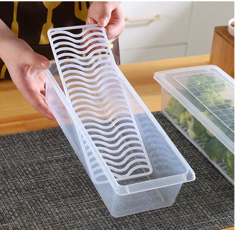 Hot Selling Kitchen Storage Box with Drain Pad Box For Refrigerator Seafood Food Fish Vegetable Fruit Drain Preservation
