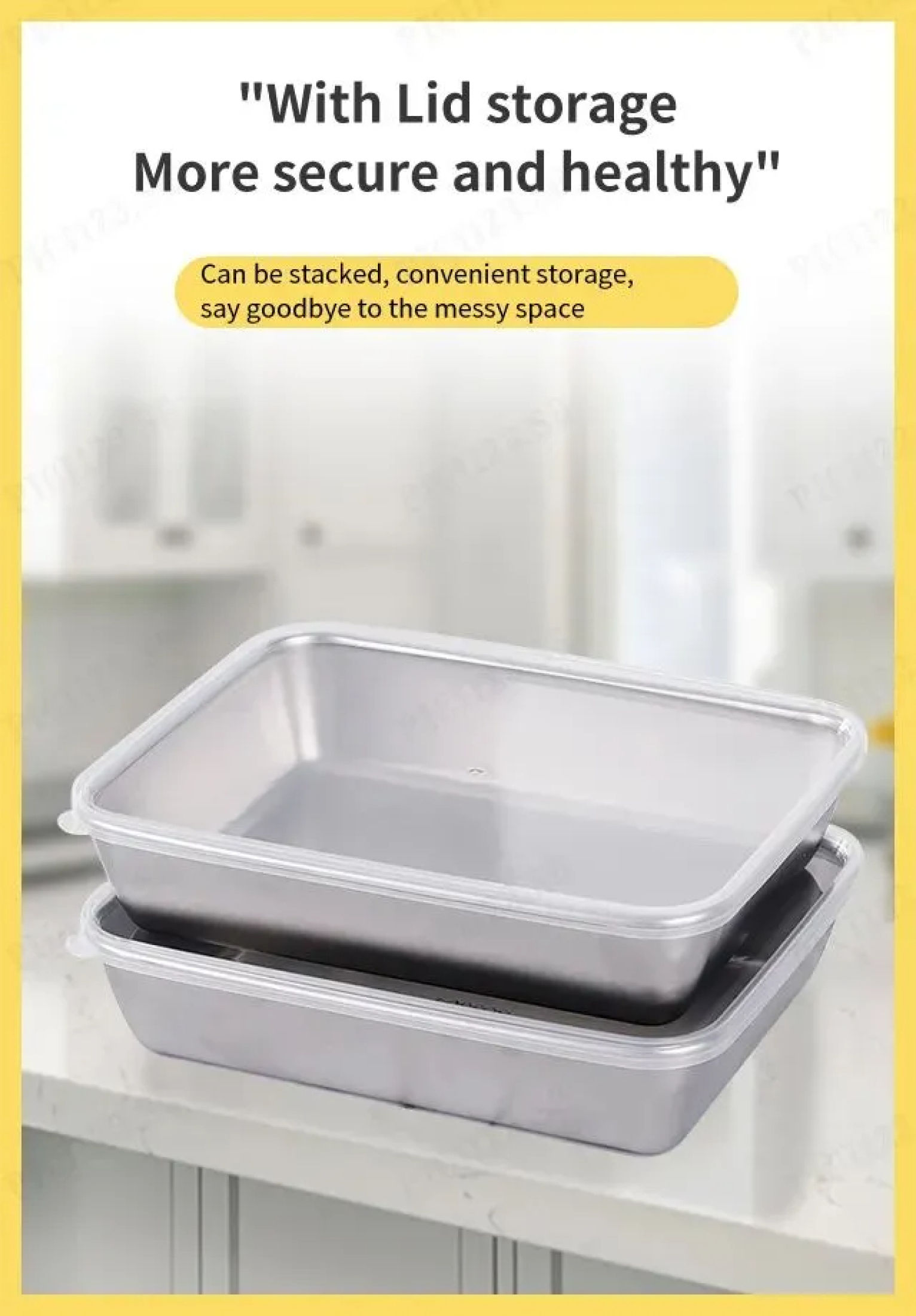 Stainless steel box Food Tray Fresh Keeping Box Food Container With Cover Food Storage organizer